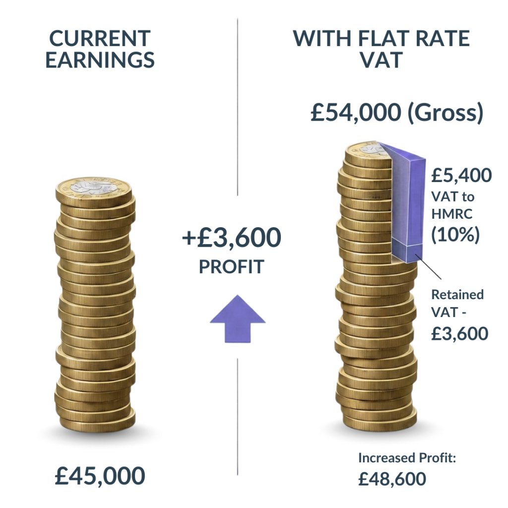 This is an example of the effect being on the Flat-Rate Scheme has on income of £45,000 per year.